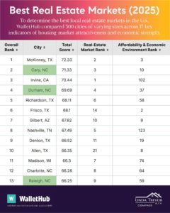 🏡 The Triangle region of North Carolina; Cary, Durham, and Raleigh continues to shine in the 2025 WalletHub rankings of the best real estate markets in the U.S. Here’s where they stand: Cary ranks an impressive #2, thanks to its strong job growth, low mortgage delinquency rates, and overall affordability despite a slightly higher cost […]